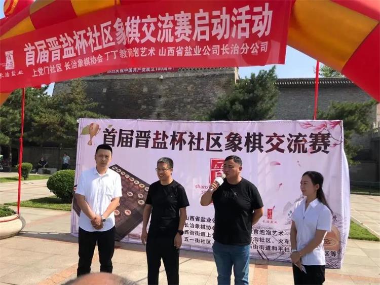 7月26日,山西省盐业集团长治分公司主办,长治西街街道、上党门社区、长治丁丁教育泡泡艺术承办的长治市潞州区首届“晋盐”杯社区象棋交流赛在长治市潞州区上党门前广场举行。