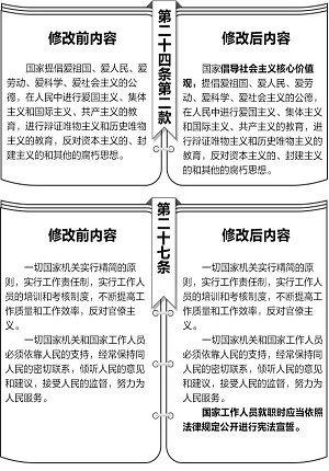 我国于1988年、1993年、1999年、2004年和2018年五次公布了《中华人民共和国宪法修正案》,对《中华人民共和国宪法》进行修改。修改内容涉及序言、总纲、公民基本权利、国家机构、国歌等内容。