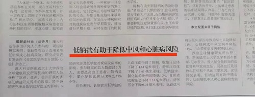 澳大利亚新南威尔士大学乔治全球健康研究所等机构的研究人员分析了欧洲、亚洲、美洲开展的多项低钠盐研究得来的数据,其中19项研究涉及低钠盐对血压的影响,5项研究涉及低钠盐对疾病发病率的影响,参与研究的总人数超过3万人,主要是高血压患者。低钠盐中,氯化钠的比例从33%至75%不等。