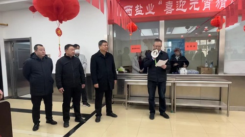 集团纪委书记、工会主席刘金波代表集团党委致辞。他指出,值此元宵佳节来临之际,为凝聚全系统干事创业精神,激发职工爱企护企热情,营造团结奋进氛围,集团公司组织全体职工开展“喜迎元宵猜灯谜 踔厉奋发向未来”活动,推动全系统认真贯彻省供销社第八届理事会第三次全体会议精神,凝聚全系统干部职工积极向上、奋力拼搏的工作热情,实现山西盐业通过提质增效的实际成果,奋力推进全系统各项工作取得高质量发展。