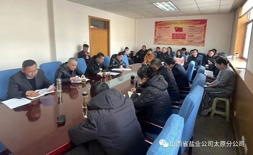 会议首先学习传达了集团公司全省盐业工作会议上《谋定目标 精准发力 上下同心 再创佳绩》的工作报告,杜志国董事长在报告中总结了2022年集团公司全年工作成绩,强调2022年是全系统内外交困,极其困难的一年,新的一年我们要直面困难,勇于担当,从四方面入手,推动集团高质量发展。一是以党的二十大精神为指引,全力推进集团公司各项工作笃定前行;二是完善晋盐产业体系,推动企业经营效益实现质和量的稳步提升;三是坚持科学管理,发挥资产优势,以绩效考核为驱动,不断激发盐业集团内生动力;四是党建引领增强发展动力,坚定不移推动全面从严治党向纵深发展。