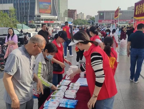 “5.15”当天,我公司领导带队,与省地病所、市卫健委、疾控中心、人民医院、中心医院、职业技术学院第一附属医院及尧都区卫体局、疾控中心等部门,共同在市平阳广场开展了主题活动,并在现场设置了门旗、宣传桌椅、宣传横幅、宣传海报、宣传资料及“晋盐”产品等相关物品。市卫健委党组成员、副主任王韶辉等领导亲临现场指导,站台助阵活动进行。侯马运销站当日也在当地开展了活动。