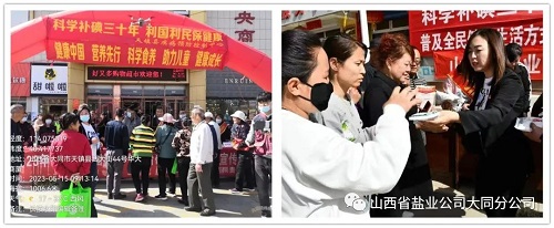 为提升社会公众防治碘缺乏病和健康用盐意识,大同盐业由经理张军同志、总支书记李忠政同志分别带队,与大同市疾病预防控制中心、浑源县卫生健康和体育局、浑源县供销社、浑源县盐业公司联合开展多种主题宣传活动,倡导科学补碘健康生活方式。