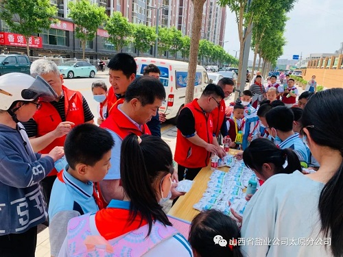 在主会场,太原分公司配合太原市疾控中心、太原市场监督局、太原市教育局开展了2023“防治碘缺乏病日”暨全民营养周宣传活动。