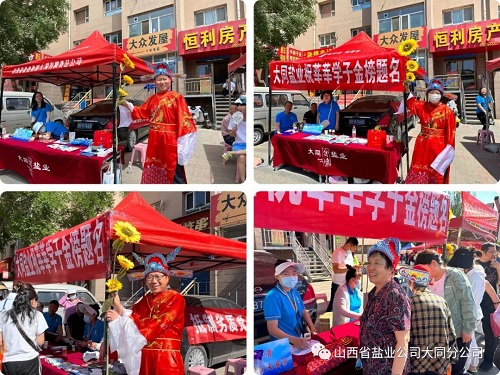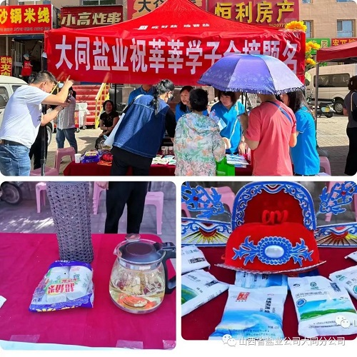 借此机会,大同盐业的工作人员为休息的家长们发放了印有晋盐品牌的团扇500把,2克定量盐勺1000余个,晋盐宣传资料1000余份,出售各类高端盐250袋。同时,为家长们普及了食盐专营政策,讲解了碘缺乏病的相关知识,并向大家仔细全面的介绍了晋盐品牌各种盐品的作用与功效。