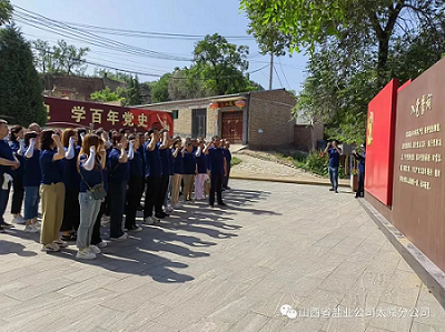 为庆祝中国共产党成立102周年,深入学习贯彻习近平新时代中国特色社会主义思想,引导党员干部树立崇高的理想信念,锤炼党员干部党性,6月27日,太原盐业党总支组织全体党员赴阳曲县店子底村开展主题党日活动,走支前路、观支前馆、上支前课、吃支前饭、重温支前精神,赓续红色血脉。
