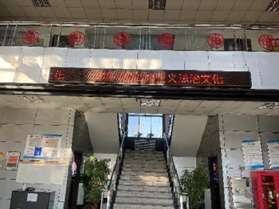 二、在公司大厅的LED屏上滚动播出今年的国家宪法宣传周相关内容。从宪法的特征、作用到宪法日设立的意义,以简练、概括的文字把宪法宣传融入到全体职工的耳融目染中。
