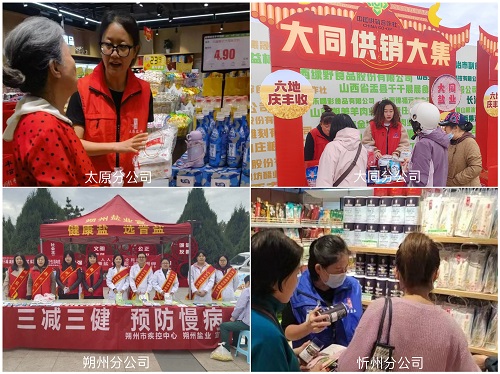 太原分公司在六城区商超市场开展联动宣传活动,全体职工深入商超进行宣传导购,及时了解客户需求,倡导客户选择适合自己的食盐产品。大同分公司主动参加以“六地庆丰收,供销汇名品”为主题的大同供销大集活动,组建早市宣传和社区宣传小组,深入各大早市和社区,为居民讲解健康用盐知识,宣传推广“晋盐”各系列产品。朔州分公司联合朔州市疾病预防控制中心,开展以“人人行动,全民控盐”和“三减三健,预防慢病”为主题的健康科普宣传活动,邀请营养专家进行现场答疑及义诊活动;在各大超市、社区设立宣传摊位,打造消费新场景、营造消费氛围、激发消费活力。忻州分公司针对食品加工企业腌制辣椒、对食品加工用盐需求较大的实际,主动深入河曲县、保德县、偏关县、五寨县以及当地批发、零售市场,了解盐商品销售及库存情况,积极协调生产、运输环节,加大库存储备,有力保证了辣椒腌制用盐的市场稳定。吕梁分公司深入商超和社区开展晋盐品牌宣传活动,对重点客户采取线上、线下相结合的方式精准回访,及时补货,同时在大型小区周边设立展台,全力营造食盐安全的良好氛围。长治分公司联合太西街道广场西社区、贝森口腔、爱尔眼科在社区驿站开展以“减盐不减咸,健康低钠盐”为主题的健康生活方式宣传活动,与长子县盐业公司、郊区盐业公司、壶关县营销站联合开展节日宣传活动,共同完善盐业发展“一张网”网点布局。晋城分公司联合晋城市城区区委宣传部和南街街道党工委,以政府“搭台”,志愿者“摆摊”,群众“赶集”的形式,共同举办“文明实践我行动·文明集市”志愿服务活动。临汾分公司深入网格区域和辖区超市、市场、门店、饭店、消费终端等开展宣传营销活动,积极促销富硒海藻碘盐等产品,重点对饭店进行走访和订单采集配送,努力深耕“晋盐”市场,扩展多元销售渠道。运城分公司坚持开展“无假日”服务,对各大超市、零售店、农贸市场等进行全面走访,确保食盐能够及时送达销售终端,在商超、小区、游园等人流集中区域开展常态化以宣促销活动。兴盐公司与社区合作,采用传单、版面、赠品等多种形式向市民宣传“三减三健”知识,倡导“健康盐、选晋盐”的消费理念。