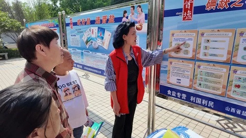 活动现场,晋盐人身着红马甲,热情地向过往居民发放现场发放宣传页,免费发放晋盐,普及碘缺乏病相关知识,帮助大家了解科学补碘的重要性,同时通过展板展示碘缺乏病的危害、科学补碘的方法以及碘盐的正确使用方式,让居民高度重视碘缺乏病是影响群众身体健康和人口素质的重大公共卫生问题,树立自觉吃碘盐的行为自觉,增强公众的健康意识。